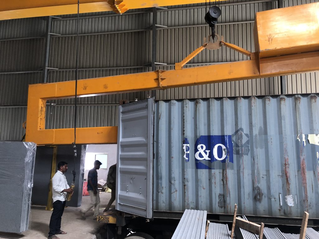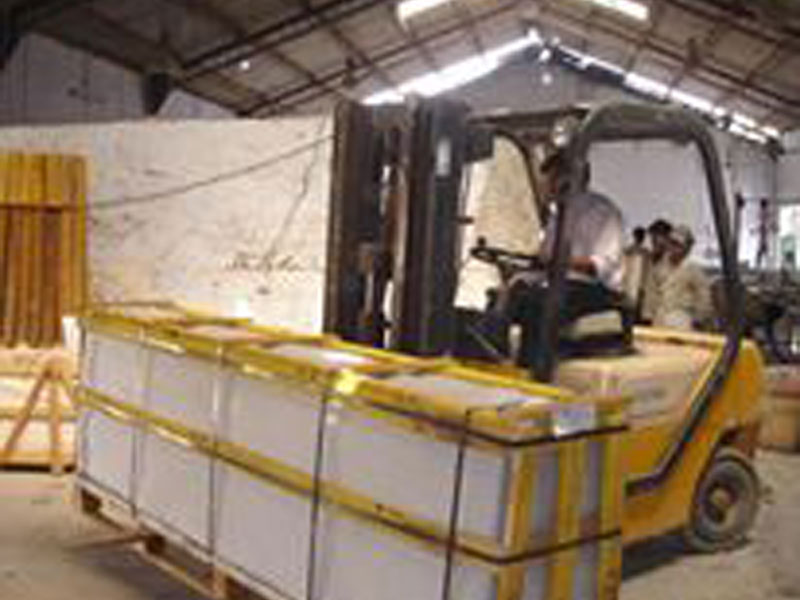 The Packing of material is done as per buyer needs.The standards practice is seaworthy wooden pallets with polythene sheets for slabs and corrguated seaworthy wooden crates with polythene sheets and thermo-cool for titles and cut to size orders. The logistics part for overseas consignments is 20ft heavy duty containers and for domestic trades it is heavy body open roof larries.We have proper packing , crafting ,stufing and dispatch of cargo thus ensure safety of the material in transit.